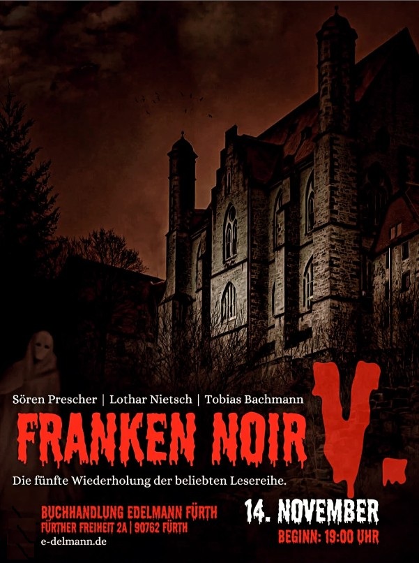 Lothar Nietsch, Tobias Bachmann und Sören Prescher lesen am Freitag, 14.11.2025 um 18 Uhr in der Fürther Buchhandlung Edelmann aus ihren aktuellen Werken. Bei mir ist der neuste Ostfrieslandkrimi.